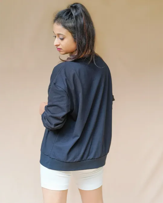 Stay cozy and stylish with our long sleeve oversized sweatshirt featuring a sleek black design and eye-catching gold lettering on the front..