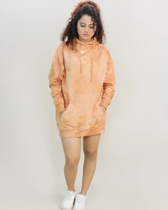 cozy and stylish in this women’s Tie Dye Hoodie Dress. Made from soft French terry fabric, this dress features a trendy tie-dye design that adds a pop of color to your wardrobe. The oversized fit provides a comfortable and relaxed look, perfect for lounging or running errands. With a soft handfeel fabric, you’ll never want to take this hoodie dress off.
