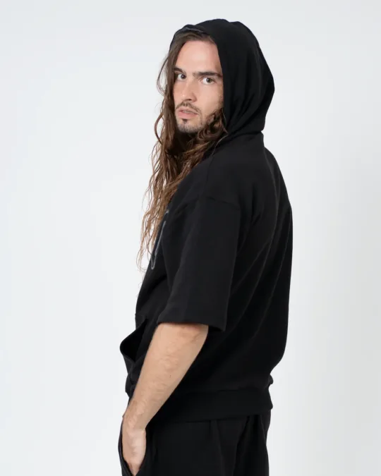 This premium quality short sleeve hoodie is designed for comfort and style,Crafted from soft brush back fabric, it ensures a cozy fit while the