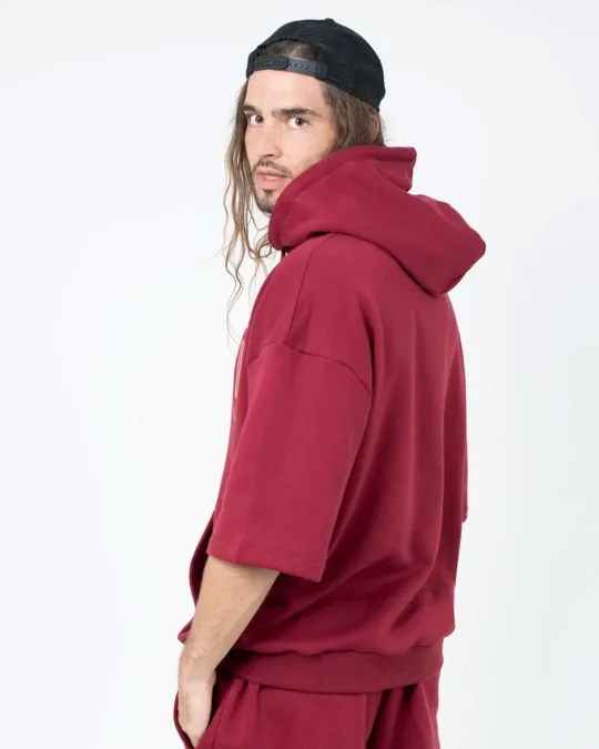 This premium quality short sleeve hoodie is designed for comfort and style,Crafted from soft brush back fabric, it ensures a cozy fit while the