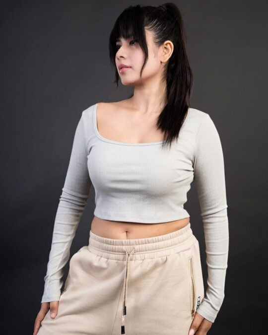 Clean lines. Cropped confidence. Everyday essential.This long-sleeve crop top soft cotton ribbed fabric, designed to hug comfortably while keeping a structured, Finished with a classic crew neckline,An easy everyday staple for street and casual styling.